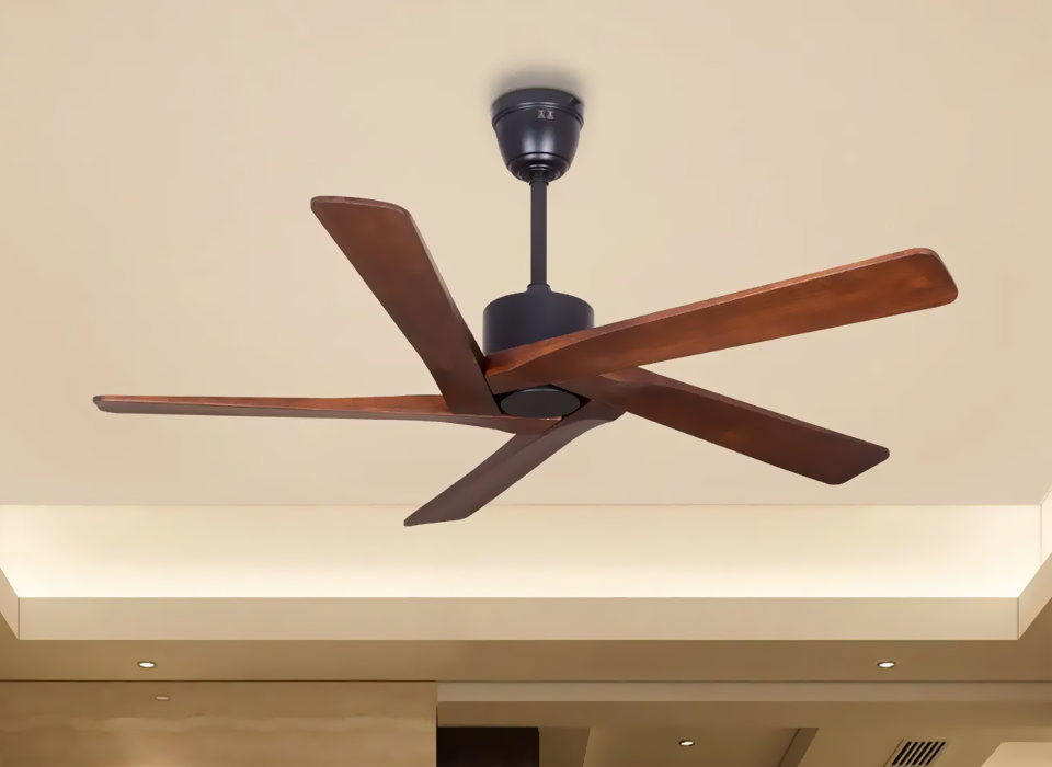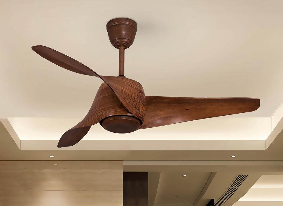 Minimalist designs with sleek wooden finishes or sculpted metallic blades. These suit urban flats, contemporary living rooms, and clean, clutter-free designs.
